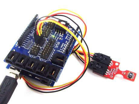 Connect DATA and SCK pins on electronic building module respectively to Arduino digital I / O, 10 pins and 11 pins, As follows: