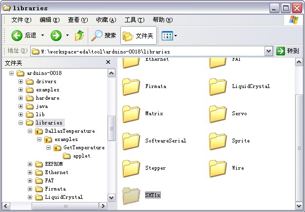 To use the electronic building module with Arduino, you can download the appropriate library code in the official website, or download directly from here, We use "Arduino 0018"to test.Extract the files to the "libraries" directory under Arduino installation directory: